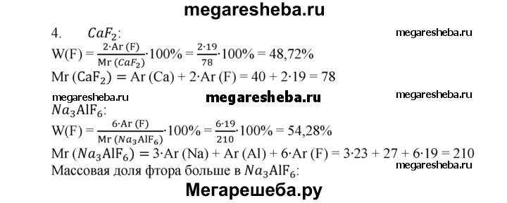 4. В каком соединении массовая доля фтора больше — в флюорите CaF2 или в криолите Na3AlF6?