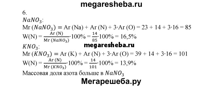 6. В каком соединении массовая доля азота больше — в чилийской селитре NaNO3 или в индийской селитре KNO3?