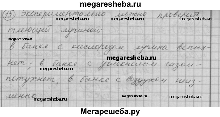15. В трех банках, закрытых пробками, содержатся: кислород, воздух, углекислый газ. Как экспериментально определить, какой газ содержится в каждой из банок?