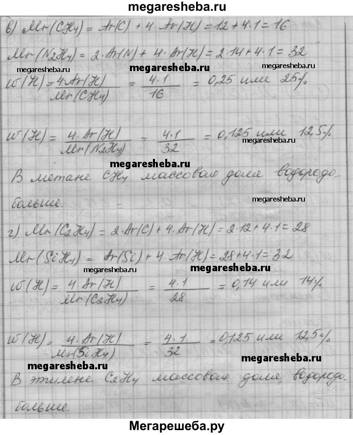 1. Определите, в каком соединении массовая доля водорода больше: а) пентан С5Н12 и бензол С6Н6; б) аммиак NH3 и пероксид водорода Н2O2; в) метан СН4 и гидразин N2H4; г) этилен С2Н4 и силан SiH4.