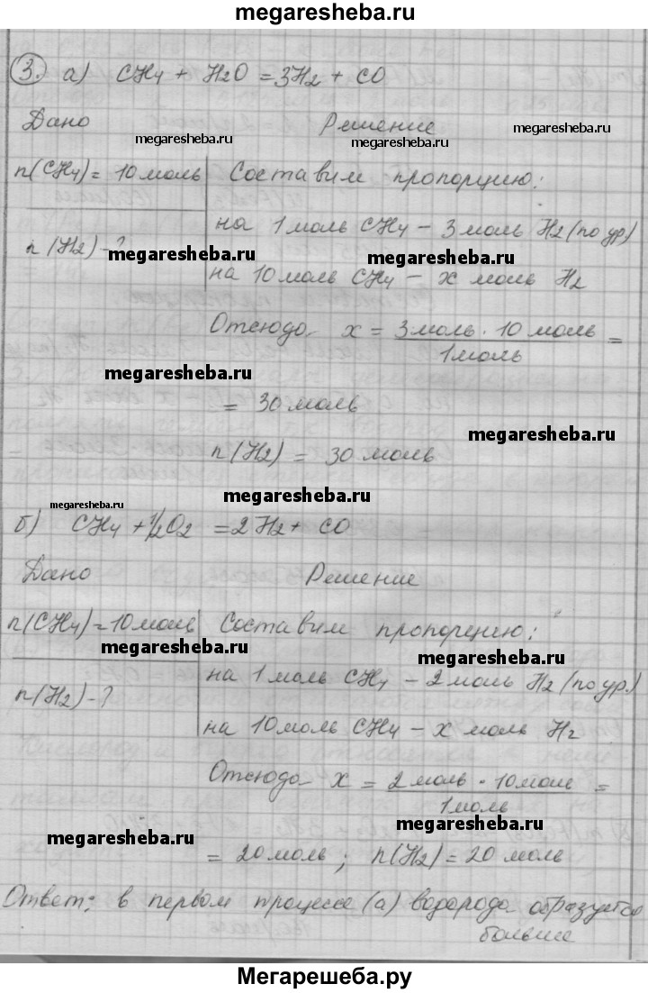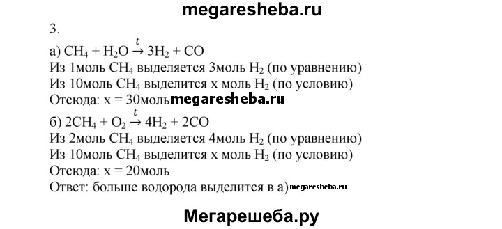 3. В промышленности водород часто получают из метана: а) СН4 + Н2O t-> Н2 + СО б) СН4 + O2 t-> Н2 + СО По приведенным схемам составьте уравнения реакций и рассчитайте, в каком из процессов образуется больше водорода, если в реакцию вступит 10 моль метана.