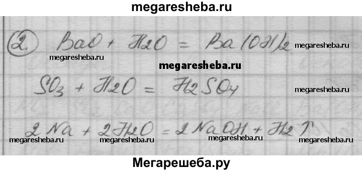 2. Даны вещества: BaO, SiO2, SO3, Сu, Na, Hg. С какими из них вода вступает в химические реакции? Напишите уравнения возможных реакций.