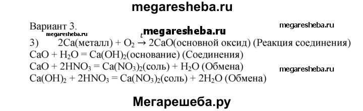Вариант 3 Напишите уравнения реакций, с помощью которых можно осуществить следующие превращения: Укажите тип каждой реакции и под формулой каждого вещества подпишите, к какому классу оно относится.