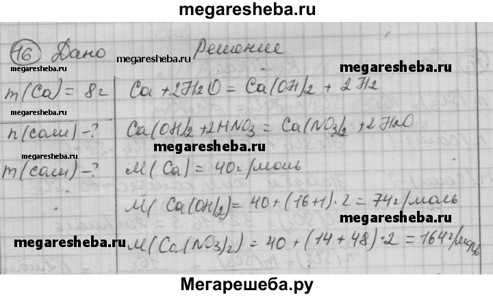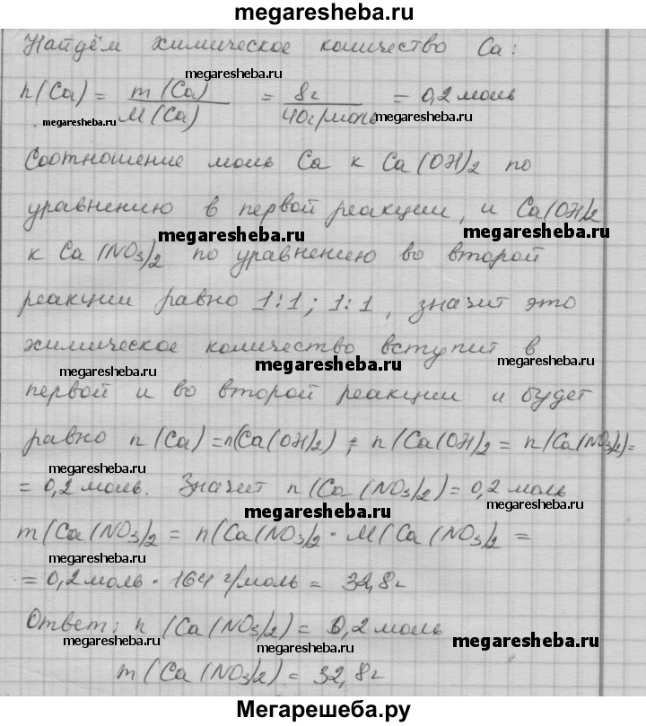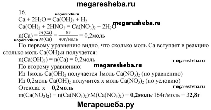16. Кальций массой 8 г полностью прореагировал с водой. Полученный гидроксид нейтрализовали азотной кислотой. Рассчитайте количество вещества и массу образовавшейся соли.