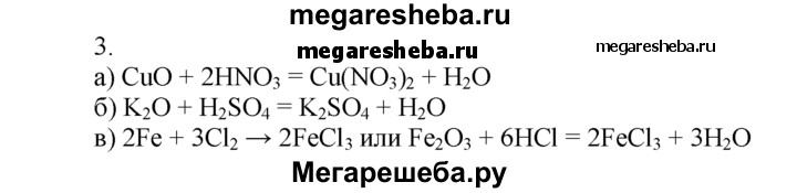 3. Составьте уравнения реакций, в результате которых образуются соли: а) нитрат меди(ll); б) сульфат калия; в) хлорид железа(lll).