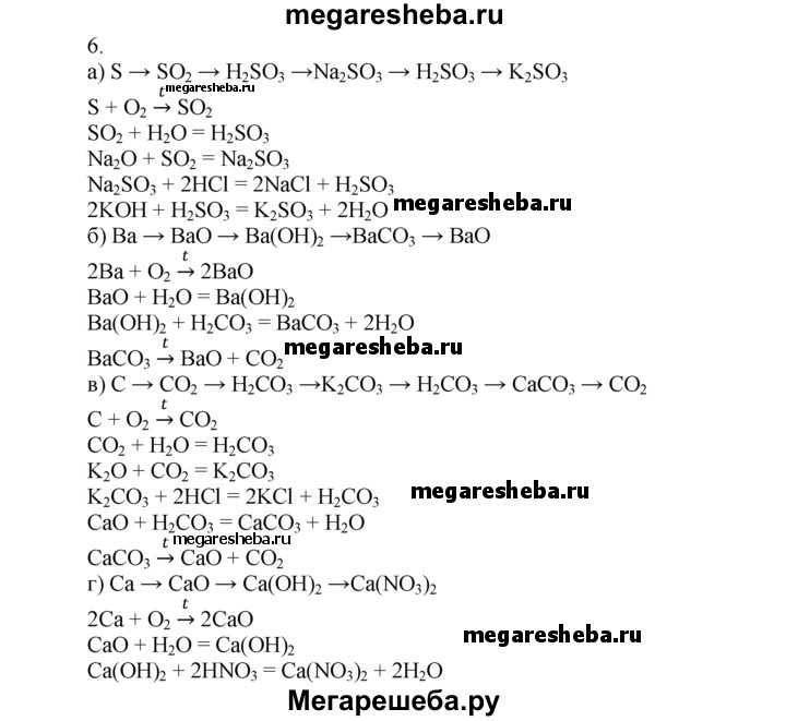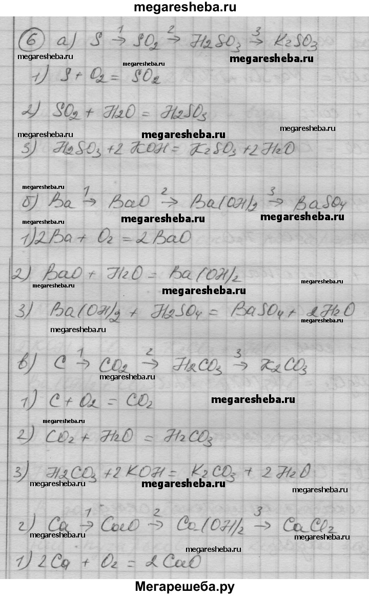 6. Составьте генетический ряд веществ, начинающийся: а) серой; б) барием; в) углеродом; г) кальцием. Напишите уравнения соответствующих реакций.