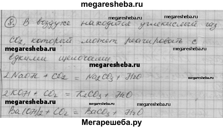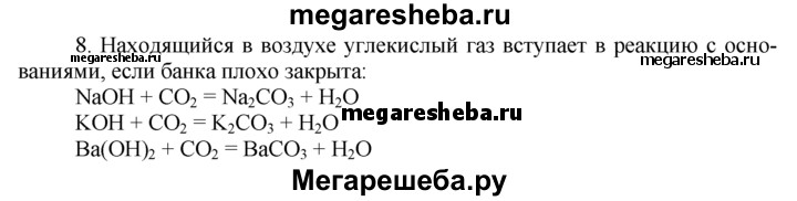8. Почему при хранении едких щелочей (NaOH, КОН, Ва(ОН)2 и др.) в банках необходимо их тщательно закрывать, чтобы в них не попадал воздух? Какие изменения могут произойти со щелочами? Напишите уравнения соответствующих реакций.