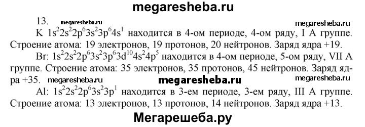 13. На основании положения в периодической таблице охарактеризуйте элементы калий, бром и алюминий.
