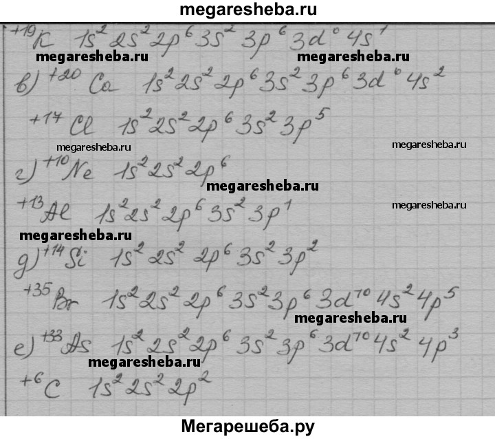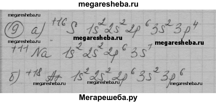 9. Напишите электронные формулы атомов: а) серы и натрия; б) аргона и калия; в) кальция и хлора; г) неона и алюминия; д) кремния и брома; е) мышьяка и углерода.