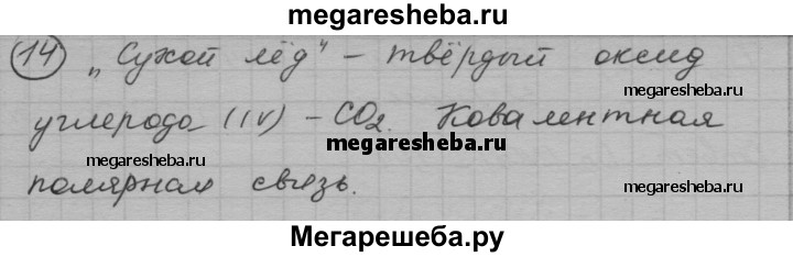 14. При хранении мороженого используют «сухой лед» — твердый высший оксид углерода. Напишите формулу этого оксида и определите вид химической связи в молекулах этого соединения.