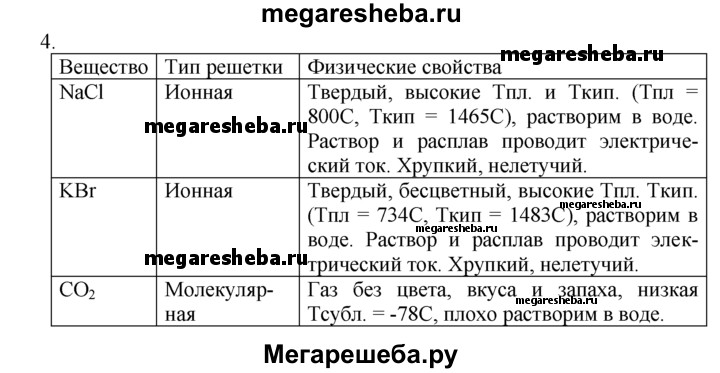 4. Приведите по два примера веществ с ионной и молекулярной кристаллическими решетками. Сравните их физические свойства.