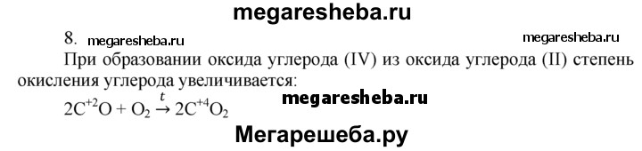 8. Как изменяется степень окисления углерода при окислении угарного газа СО до углекислого газа СO2? Ответ поясните.