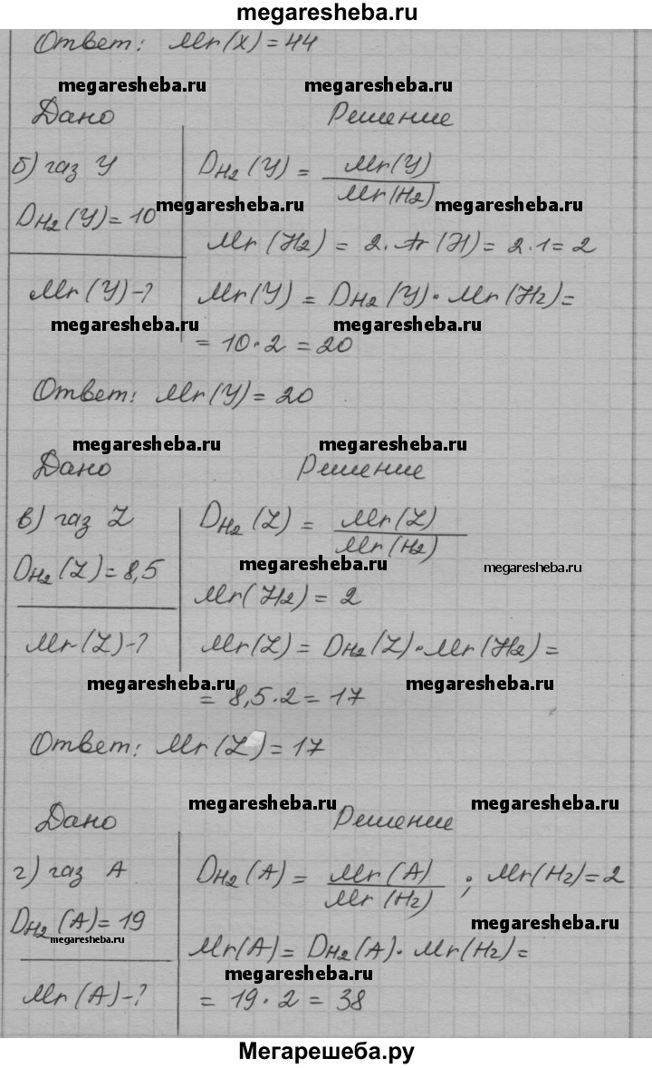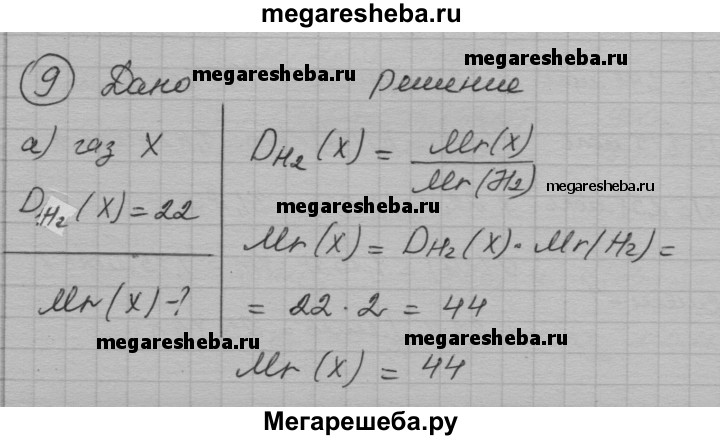 9. Рассчитайте относительные молекулярные массы газов, относительная плотность которых по водороду равна: а) 22; б) 10; в) 8,5; г) 19.