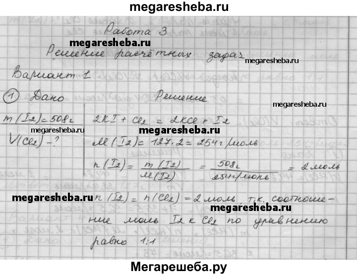 Вариант 1 1. Рассчитайте объем хлора (н. у.), который прореагировал с иодидом калия, если при этом образовался иод массой 508 г. 2. Какой объем займет 0,5 моль хлора (н. у.)?