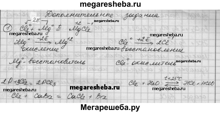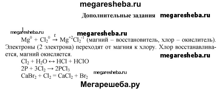 1. Даны вещества, формулы которых NaCl, Mg, Н2O, Р, KF и СаВr2. С какими из них будет взаимодействовать хлор? Составьте уравнения возможных реакций. Одну из них разберите как окислительно-восстановительную: укажите степени окисления элементов, а также окислитель и восстановитель.