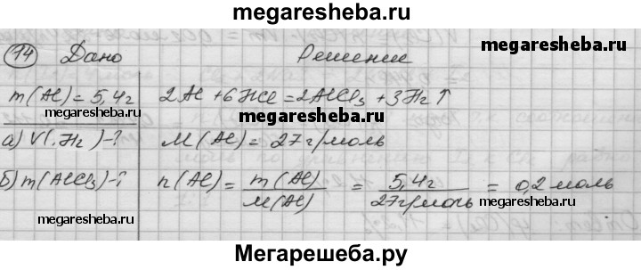 14. Алюминий массой 5,4 г прореагировал с соляной кислотой. Вычислите: а) объем выделившегося водорода (н. у.); б) массу образовавшейся соли.