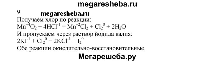 9. Как, имея в своем распоряжении иодид калия, соляную кислоту и оксид марганца(lV), получить иод? Составьте уравнения протекающих реакций и укажите, являются ли они окислительно-восстановительными.