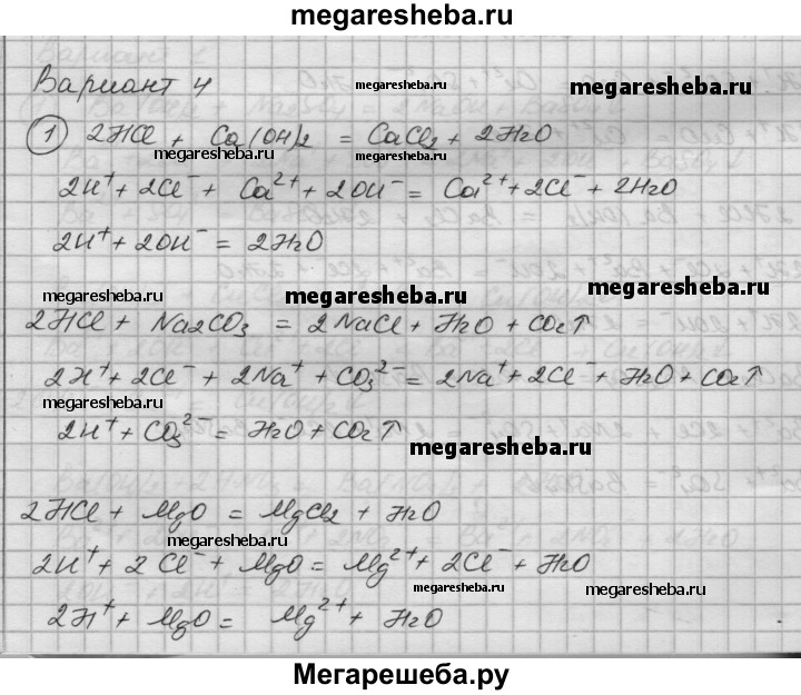 Вариант 4 1. С какими из перечисленных веществ будет реагировать соляная кислота: гидроксид кальция, алюминий, карбонат натрия, серебро, оксид магния, ртуть? Напишите молекулярные и ионные уравнения возможных реакций. 2. Как можно получить сульфат магния двумя разными способами? Напишите молекулярные и ионные уравнения возможных реакций.