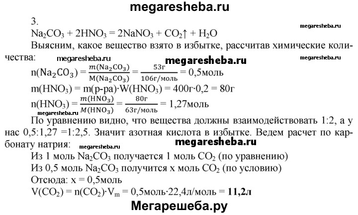 3. Какой объем газа (н. у.) выделится, если к раствору, содержащему 53 г карбоната натрия, прилить раствор азотной кислоты массой 400 г с массовой долей кислоты 20%?