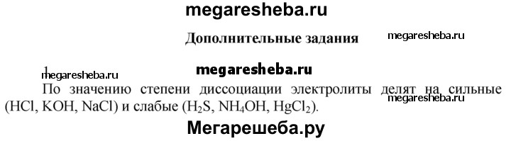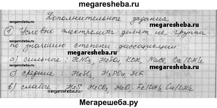 1. На какие группы условно делят электролиты по значению степени диссоциации? Приведите примеры представителей этих групп.