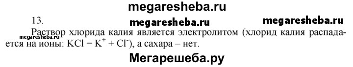 13. Почему раствор хлорида калия проводит электрический ток, а раствор сахара нет?