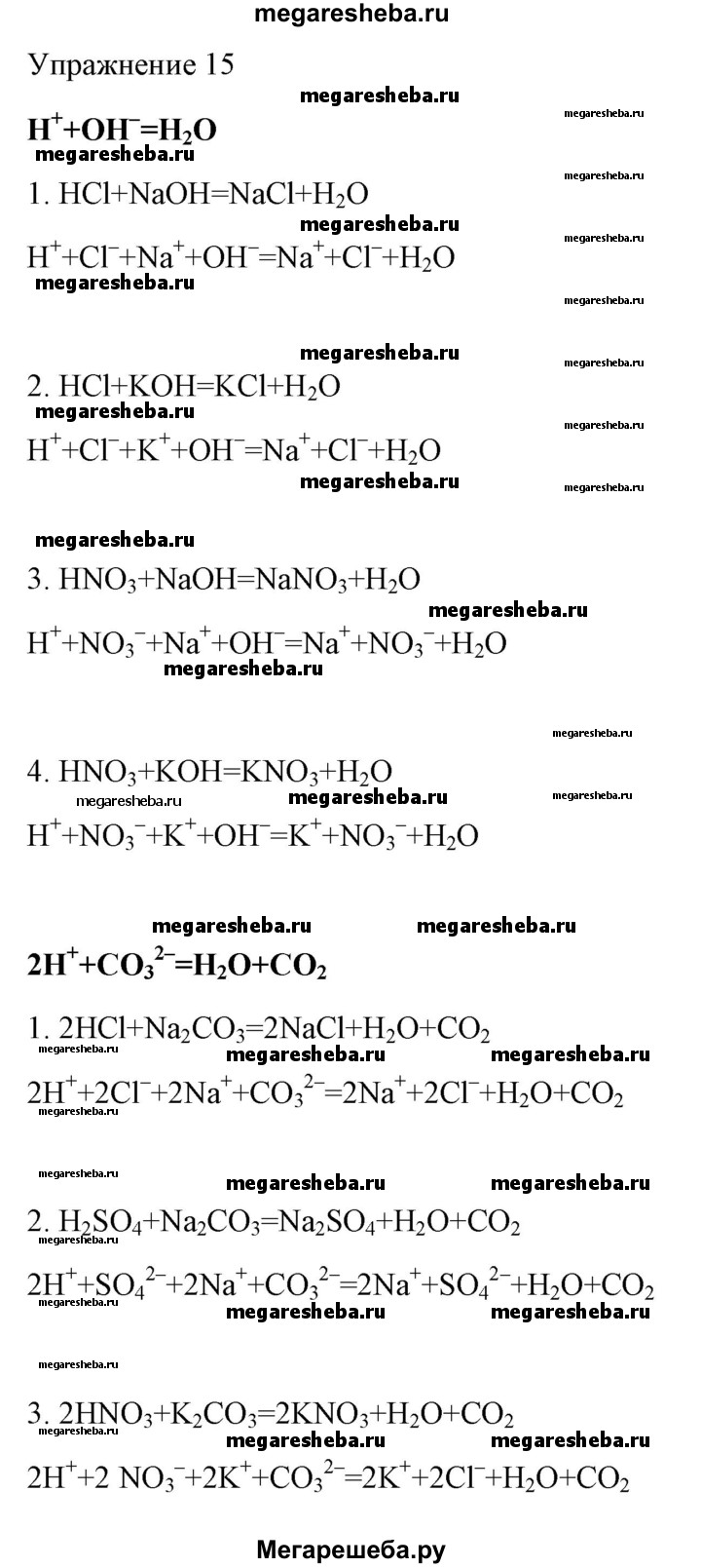 15. Напишите молекулярные и ионные уравнения двух химических реакций, сущность которых можно выразить одним сокращенным ионным уравнением реакции.