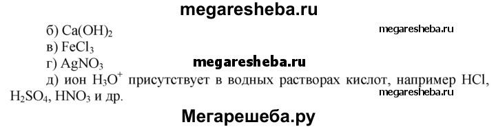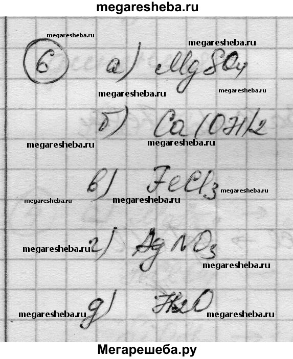 6. Напишите формулы веществ, в водных растворах которых содержатся ионы: a) Mg^2+ и SO4^2-; б) ОН^- и Са^2+; в) Сl^- и Fe^3+; г) Ag^+ и NO3^-, д) Н3O^+.