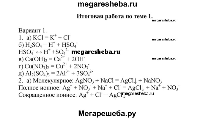 Подробный решебник (ГДЗ) по Химии за 8‐9 (восьмой‐девятый) класс дидактический материал - готовый ответ 9 класс тема 1 итоговая работа по теме 1 - 1. Авторы учебника: Радецкий. Издательство: Просвещение 2016.