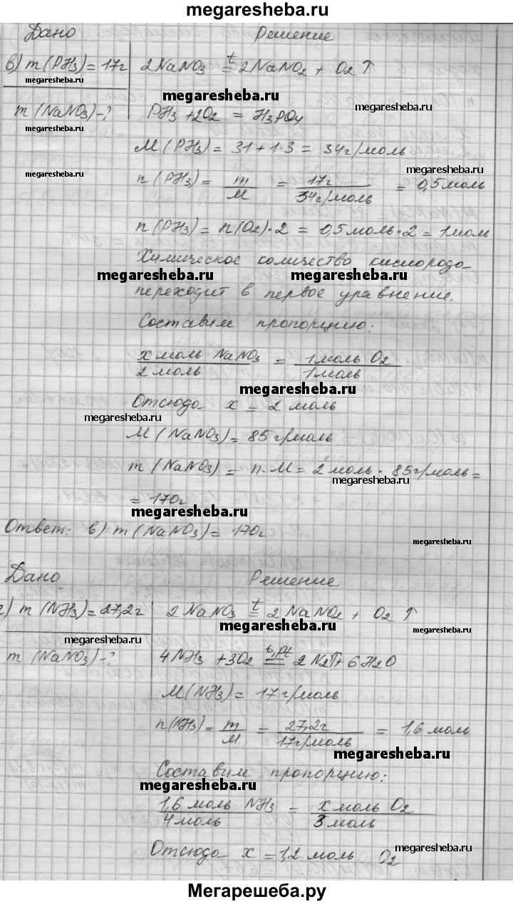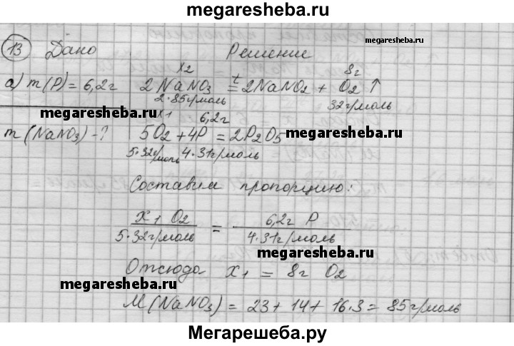 13. Рассчитайте массу нитрата натрия, который необходимо разложить при нагревании, чтобы выделившегося при этом кислорода было достаточно для полного сжигания: а) 6,2 г фосфора; б) 36 г угля; в) 17 г фосфина РН3; г) 27,2 г аммиака.