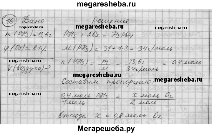 16. Рассчитайте объем воздуха (н. у.), который будет израсходован при полном сгорании 13,6 г фосфина. Объемная доля кислорода в воздухе составляет 21%.