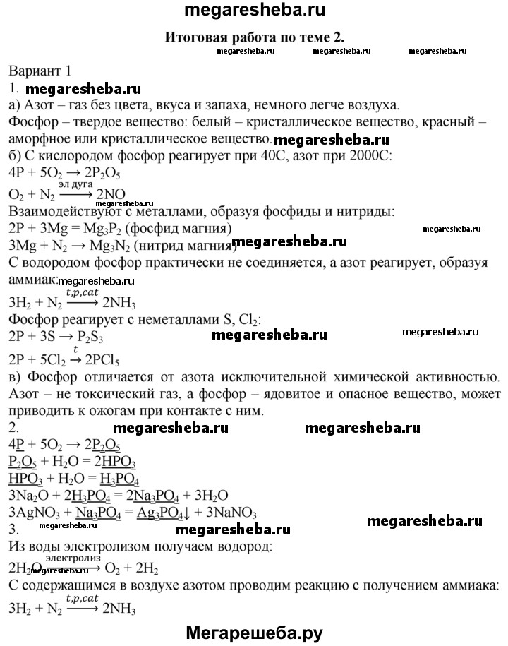 Подробный решебник (ГДЗ) по Химии за 8‐9 (восьмой‐девятый) класс дидактический материал - готовый ответ 9 класс тема 3 итоговая работа по теме 3 - 1. Авторы учебника: Радецкий. Издательство: Просвещение 2016.