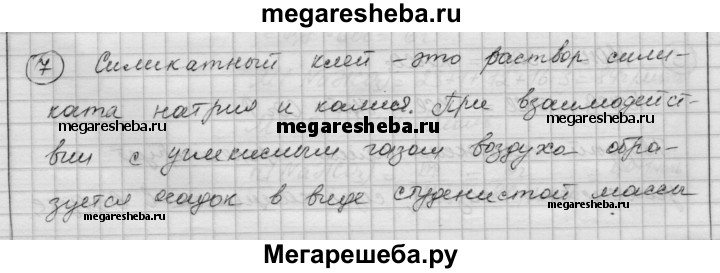 7. Силикатный клей нельзя хранить в открытой склянке, так как он поглощает из воздуха углекислый газ, вследствие чего клей превращается в студенистую массу. Объясните это явление и напишите уравнение протекающей химической реакции.