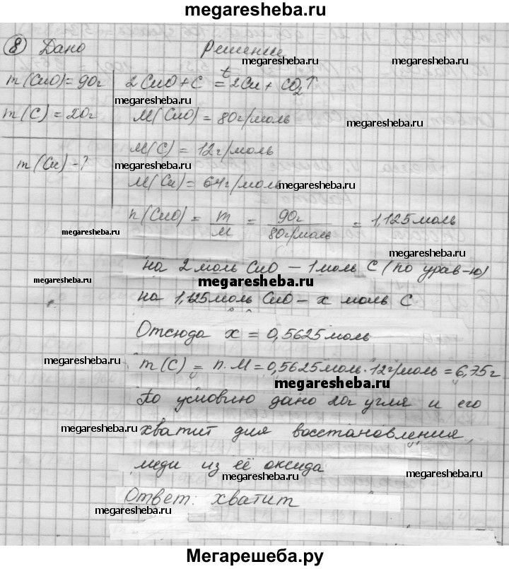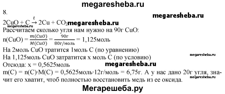 8. Можно ли полностью восстановить медь из оксида меди(ll) массой 90 г, если прокалить ее с 20 г угля?