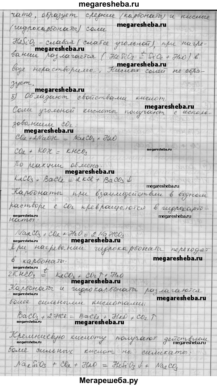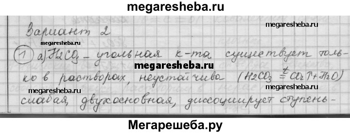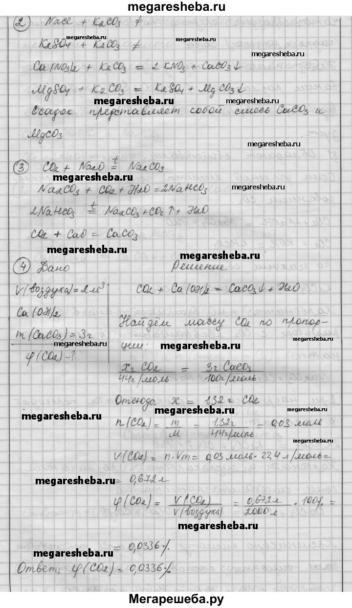 Вариант 2 1. Дайте сравнительную характеристику угольной и кремниевой кислот. Укажите сходство и различие: а) в составе; б) в физических и химических свойствах. Ответ подтвердите необходимыми уравнениями реакций. 2. В растворе содержатся соли: хлорид натрия, сульфат калия, нитрат кальция и сульфат магния. К нему прилили раствор карбоната калия. Выпал белый осадок. Что представляет собой этот осадок? Составьте уравнения протекающих реакций. 3. Напишите уравнения реакций, с помощью которых можно осуществить следующие превращения: СO2 —> Na2CO3 —> NaHCO3 —> СO2 —> СаСO3 4. При пропускании 2 м воздуха (н. у.) через раствор гидроксида кальция образовалось 3 г карбоната кальция. Рассчитайте объемную долю (%) оксида углерода(lV) в воздухе.
