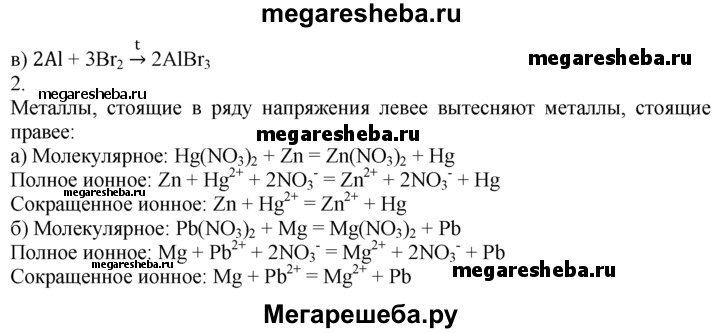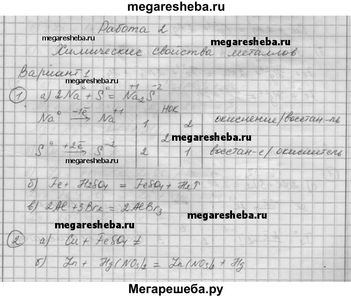 Вариант 1 1. Составьте уравнения реакций: а) натрия с серой; б) железа с раствором серной кислоты; в) алюминия с бромом. В уравнении реакции а укажите степени окисления элементов и расставьте коэффициенты с помощью метода электронного баланса. 2. Укажите, между какими веществами произойдут химические реакции: а) медь и раствор сульфата железа(ll); б) цинк и раствор нитрата ртути(ll); в) магний и раствор нитрата свинца(ll). Напишите уравнения соответствующих реакций в молекулярной и сокращенной ионной формах.