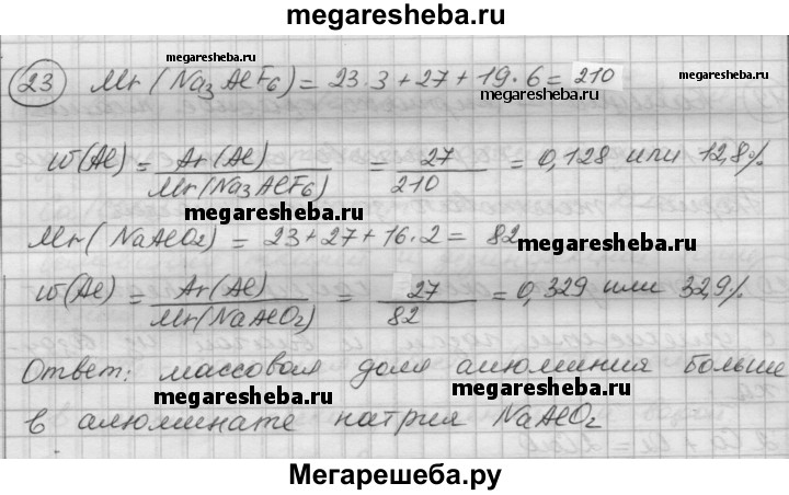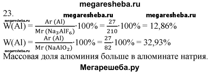 23. В каком соединении массовая доля алюминия больше—в криолите Na3AlF6 или в алюминате натрия NaAlO2?