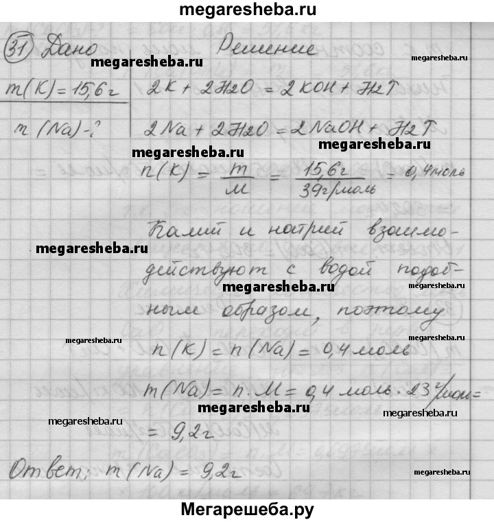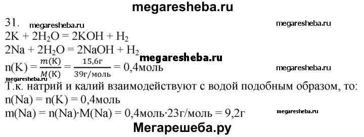 31. При «растворении» какой массы натрия в воде выделится такой же объем водорода (н. у.), как и при «растворении» 15,6 г калия?
