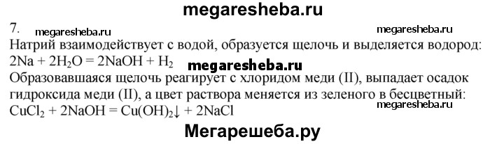 7. В раствор хлорида меди(ll) поместили кусочек натрия. Напишите уравнения протекающих при этом реакций и поясните их.