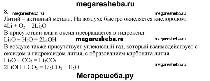 8. Кусочек лития оставили на воздухе. Напишите уравнения реакций, которые будут при этом протекать.