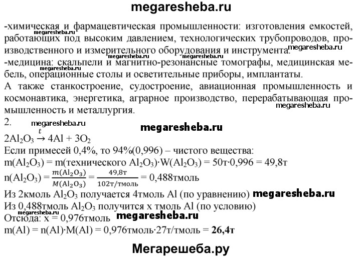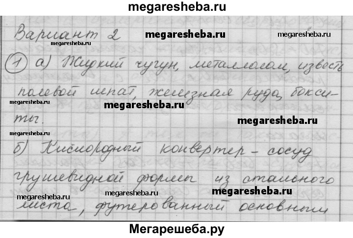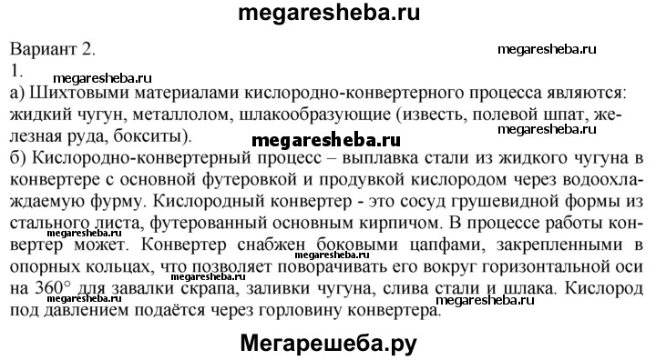 Вариант 2 1. Опишите производство стали кислородно-конверторным способом по плану: а) сырье; б) устройство аппарата для производства; в) основные химические реакции, протекающие при производстве. Где применяют сталь? 2. Рассчитайте массу алюминия, который можно получить при электролизе 50 т оксида алюминия, содержащего 0,4% примесей. Уравнение реакции: 2Аl2О3 = 4Аl + 3O2