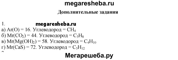 1. Напишите молекулярные формулы предельных углеводородов, относительная молекулярная масса которых равна: а) относительной атомной массе кислорода; б) относительной молекулярной массе углекислого газа; в) относительной молекулярной массе гидроксида магния; г) относительной молекулярной массе CaS.