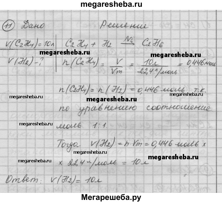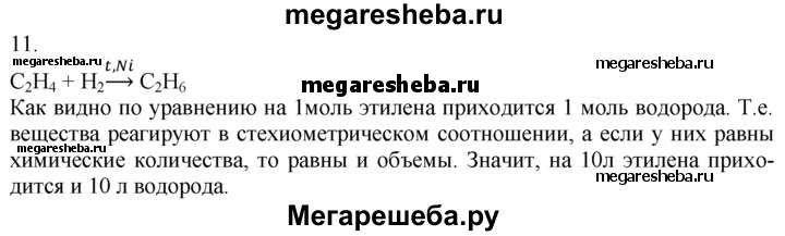 11. Рассчитайте объем водорода, который вступит в реакцию с 10 л этилена.