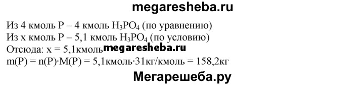 3. Термический метод получения фосфорной кислоты заключается в том, что полученный из природных фосфатов фосфор сжигают, образующийся оксид фосфора(V) при взаимодействии с водой дает Н3РO4. Суммарное уравнение реакции 4Р + 5O2 + 6Н2O = 4Н3РO4 Рассчитайте массу фосфора, необходимого для получения 400 кг фосфорной кислоты, если массовая доля выхода фосфорной кислоты составляет 80%.