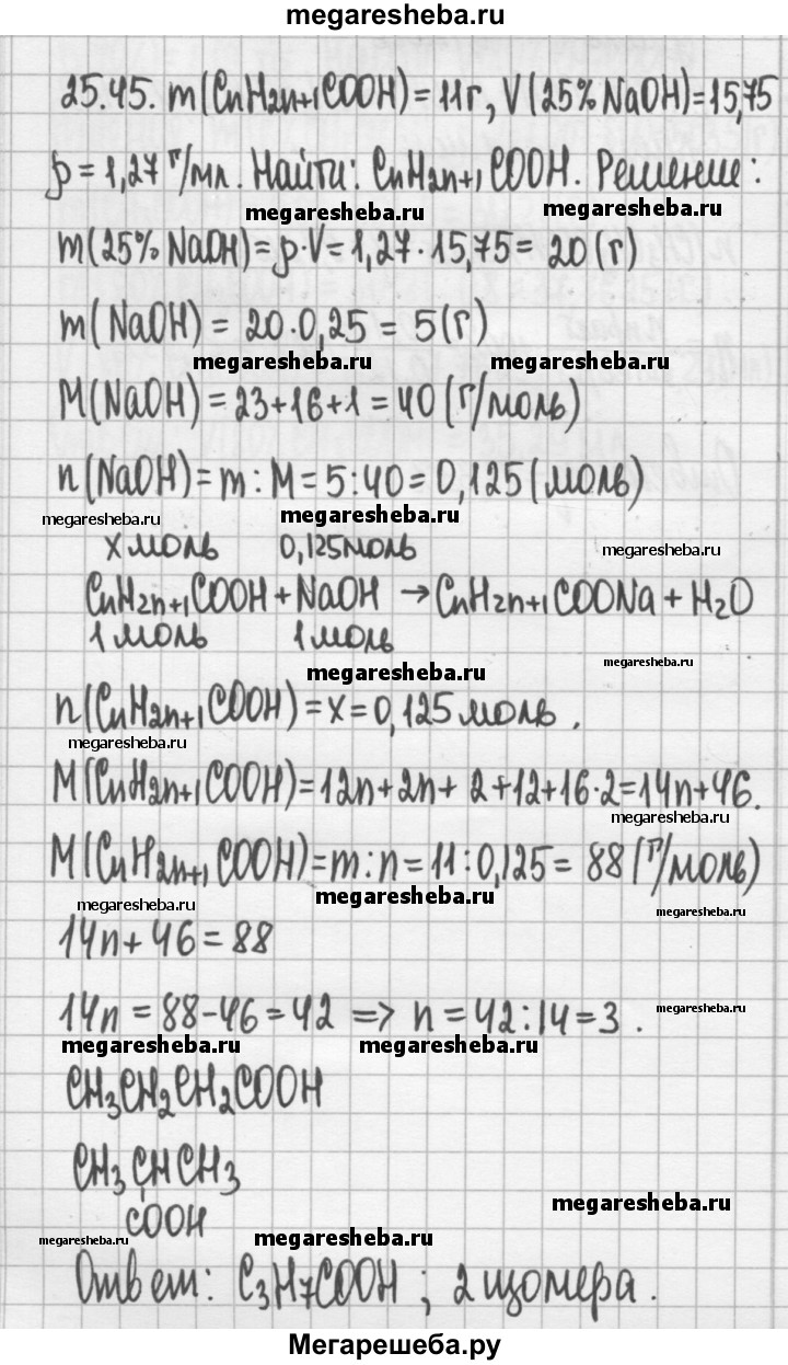 Подробный решебник (ГДЗ) по Химии за 8‐11 (восьмой‐одиннадцатый) класс сборник задач и упражнений - готовый ответ глава 25 - 25.45. Авторы учебника: Хомченко. Издательство: Новая волна 2009.