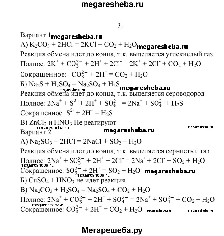 Решебник №2 к учебнику 2016 / §11. Практическая работа 2. Решение экспериментальных задач по теме” Свойства кислот, оснований и солей как электролитов” / 3
