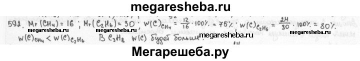 592. Вычислите массовую долю углерода в органических веществах, молекулярные формулы которых СН4 и С2Н6, и сравните полученные результаты. Можете ли вы без вычислений определить, в каком из веществ — С3Н8 или С2Н6 — массовая доля углерода больше?