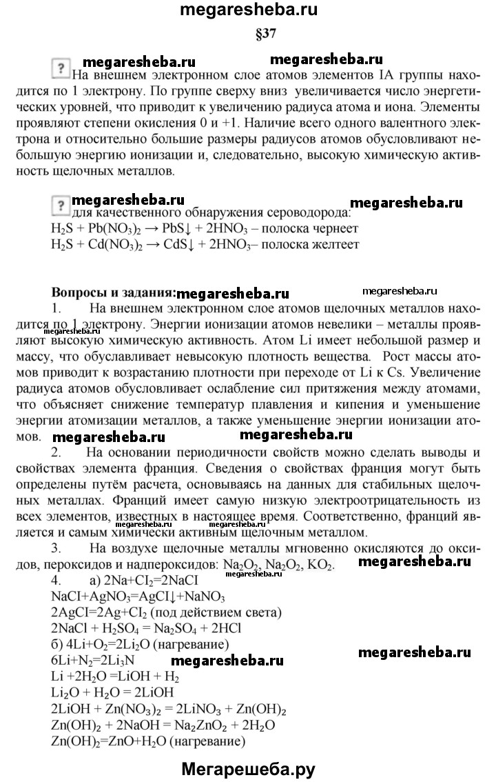 Подробный решебник (ГДЗ) по Химии за 9 (девятый) класс учебник, задачник - готовый ответ глава 8 вопросы и задания - §37. Авторы учебника: Кузнецова, Левкин, Титова, Гара. Издательство: Вентана-граф 2017.