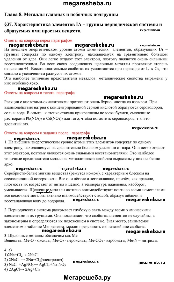 ГДЗ по химии 9 класс Кузнецова учебник, задачник глава 8 вопросы и задания - §37