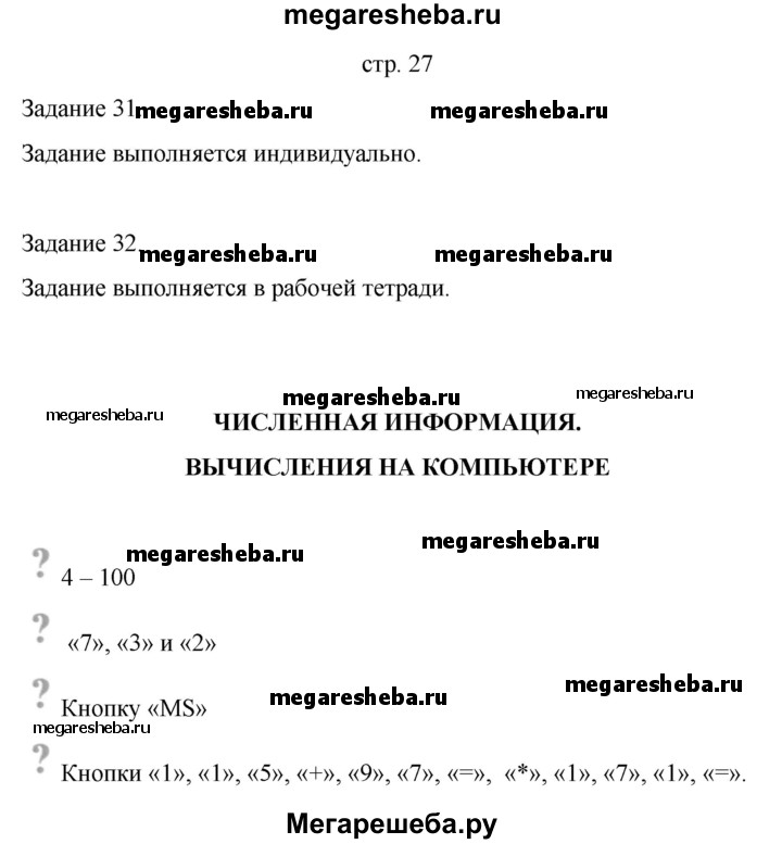 Подробный решебник (ГДЗ) по Информатике за 4 (четвертый) класс - готовый ответ часть 2 (страница) - 27. Авторы учебника: Бененсон, Паутова. Издательство: Академкнига 2017.