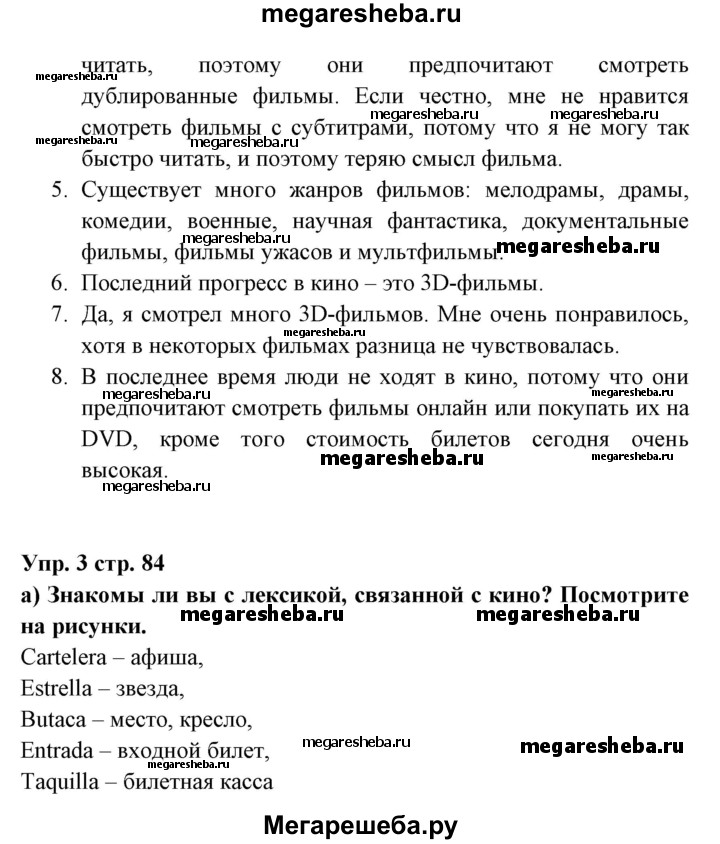 ГДЗ по испанскому языку 6 класс Цыбулёва Повышенный уровень часть 1. страница - 84